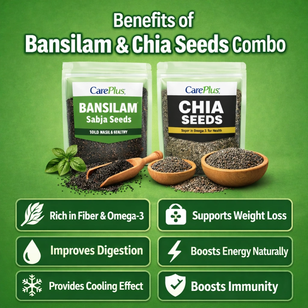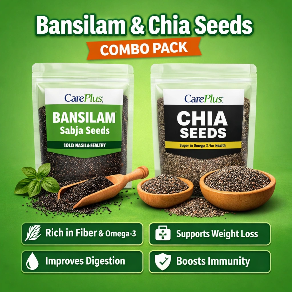 Upgrade your daily nutrition with the CarePlus Bansilam & Chia Seeds Combo Pack, a perfect blend of two powerful superfoods. This combo is designed to support digestion, weight management, and overall health naturally.