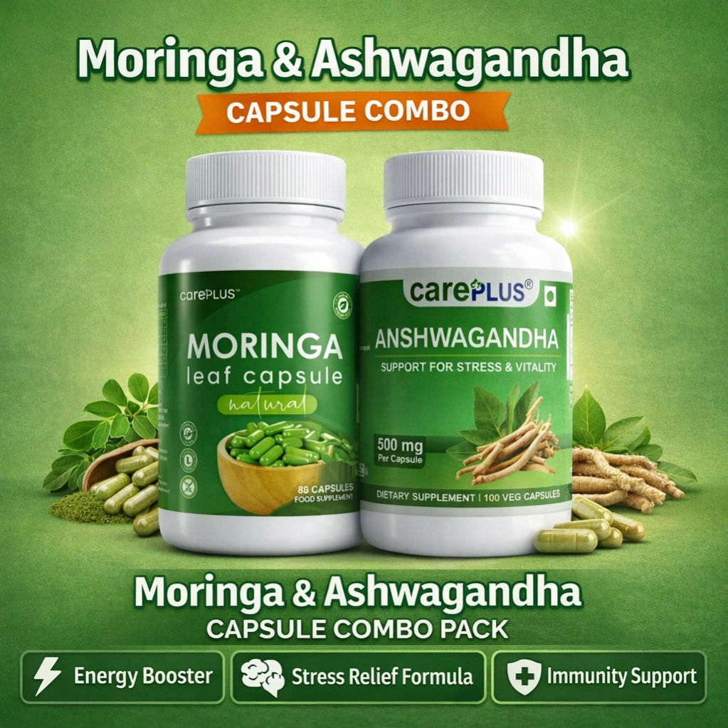 Upgrade your daily health routine with the CarePlus Moringa Capsule & Ashwagandha Capsule Combo, a perfect blend of two powerful Ayurvedic superfoods. This combo helps support immunity, increase energy levels, and reduce stress naturally.